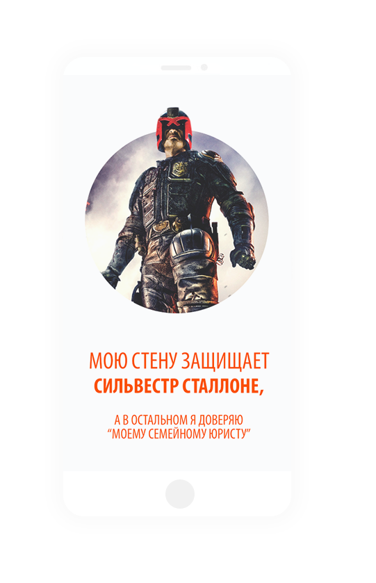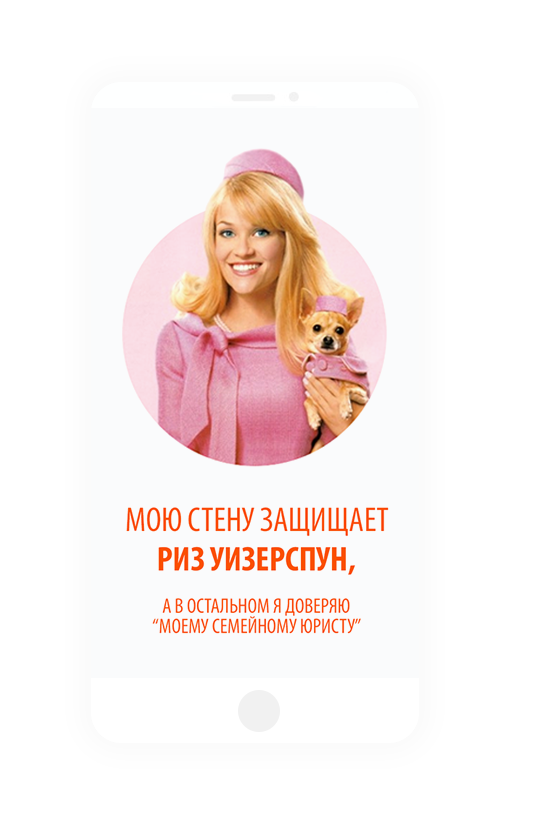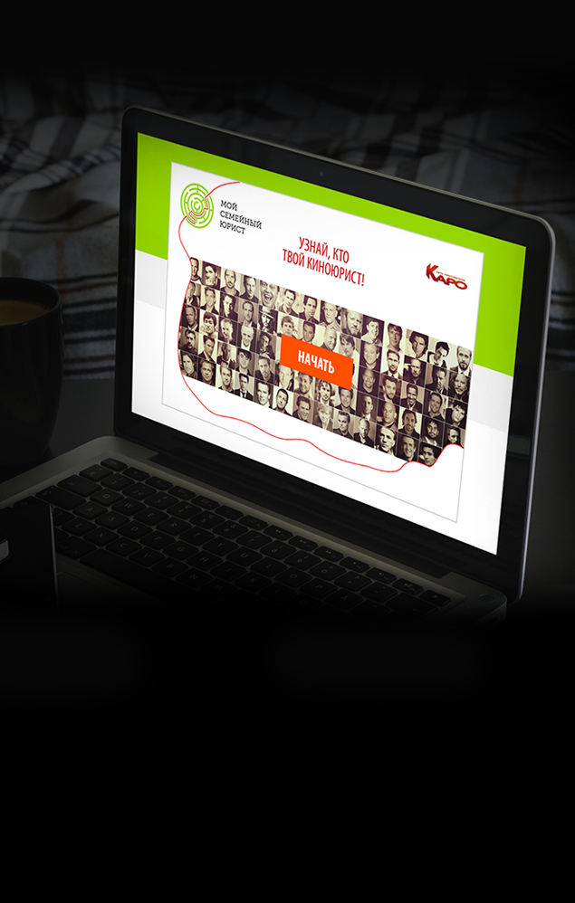 Для разработки теста выбираем наиболее массовую и доступную для понимания тематику - «Кино», и при этом сохраняем максимальную привязку к клиенту, построив специфику вопросов и вариантов ответов теста на сюжете и цитатах из фильмов про юристов и правосудие. Тематика вопросов теста должна соответствовать одной из специализаций услуг, предоставляемых компанией «Мой семейный юрист»: «Автомобиль», «Штрафы / судопроизводство», «Семья», «Работа», «Покупки», «Недвижимость».